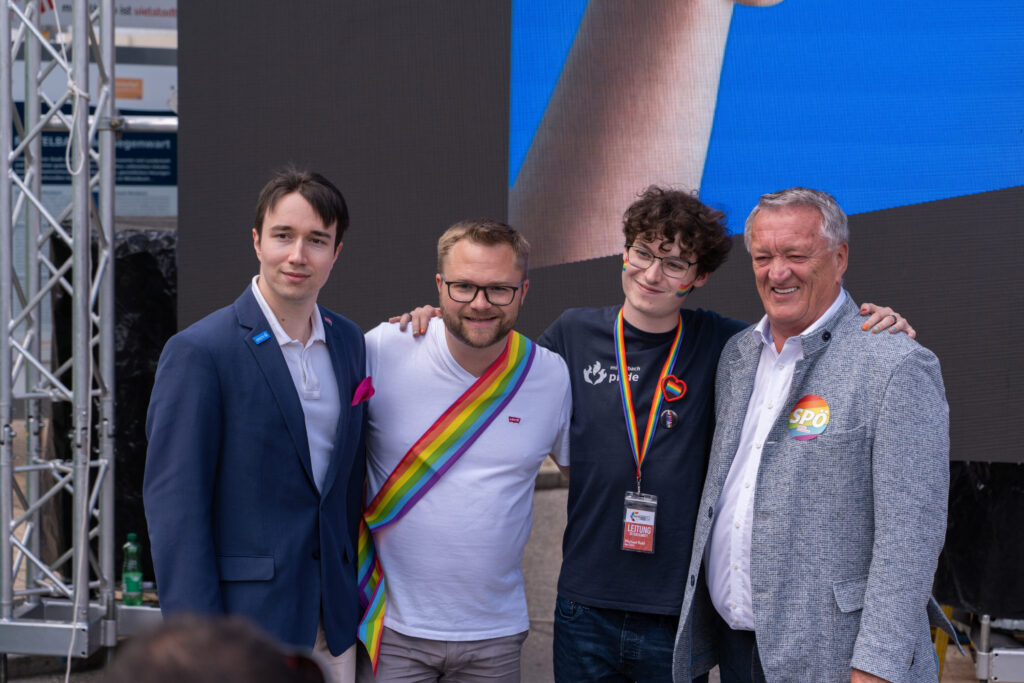 Wir sind überzeugt: Am meisten bewegen wir, wenn nicht jede*r für sich kämpft, sondern wir miteinander handeln – ob Pride-Organisation, Bäcker*in von nebenan, Nachbarsoma oder 16-jährige HAK-Schülerin. Vielfalt entsteht dort, wo Menschen einander zuhören, sich gegenseitig stärken und gemeinsam Haltung zeigen.